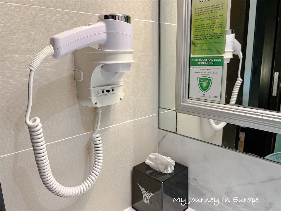 我住的房間是怡東(Excelsior)大樓的雙人房,房間的裝潢設計很典雅,空間也不會太小,住起來還算滿舒適的,但缺點就是我住的房間正對面就是消防局,每天晚上不知道是有演練還是因為有火災,所以常常會有很大聲的廣播,有時半夜會被吵醒。