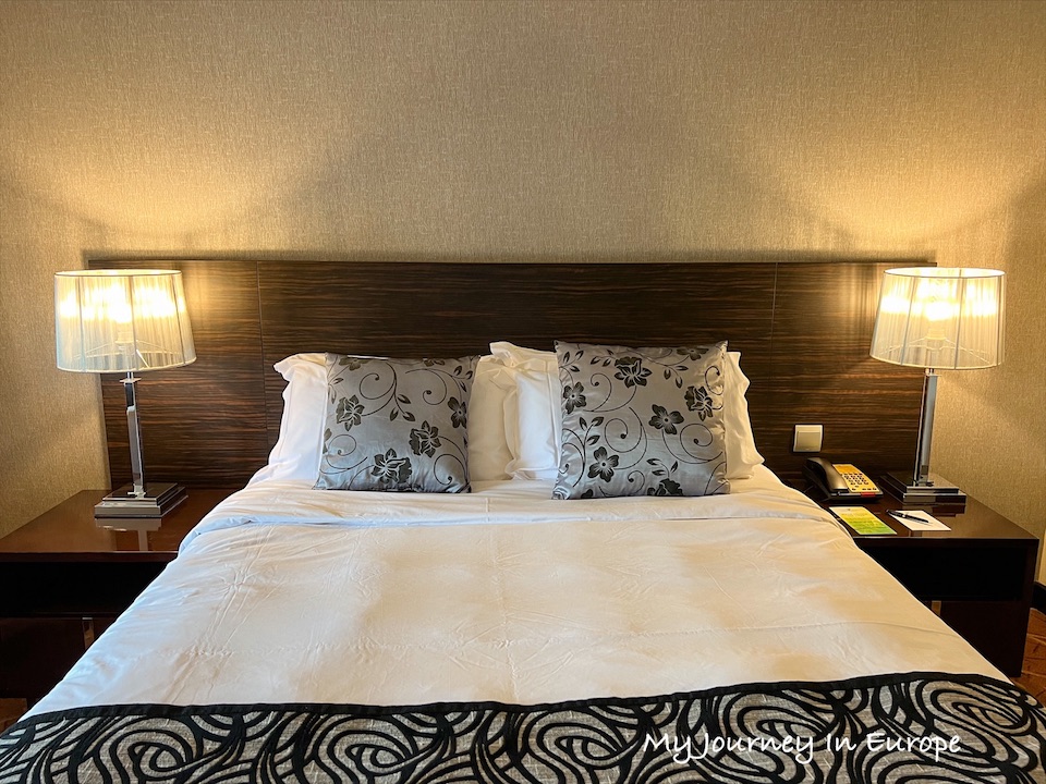房間的燈雖然很多盞,但整體光線還是有點偏暗,枕頭躺起來很舒服,床則是稍微有點偏硬的那種。