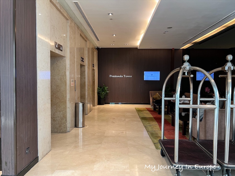 半島怡東酒店分成兩棟大樓,一棟是半島(Peninsula)大樓、一棟是怡東(Excelsior)大樓,大廳是在 L 層的Lobby,由大廳把兩棟大樓連在一起,所以如果要Check in的話要到 L 層的大廳去辦理入住手續。