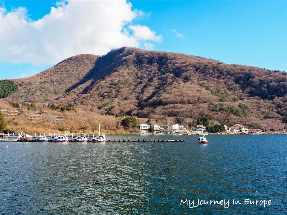 除了水上鳥居之外,還有一個必看的就是富士山!不過在船上看富士山視野沒那麼好,因為有很大一部份的富士山都被擋住了,在桃源台港搭纜車時或是在大涌谷可以看到更清楚的富士山。