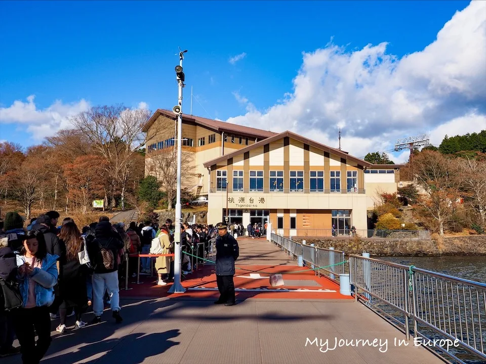 箱根海盜船總共會停靠3個點,其中元箱根港和桃源台港是最多人上下船的港口,因為元箱根港就在箱根神社附近,桃源台港則是可以搭纜車去大涌谷。我自已的箱根一日遊行程是以順時鐘的方式玩箱根景點,所以我是先去箱根神社和箱根水上鳥居,再從元箱根港搭箱根海盜船到桃源台港下船,轉搭纜車到大涌谷。
