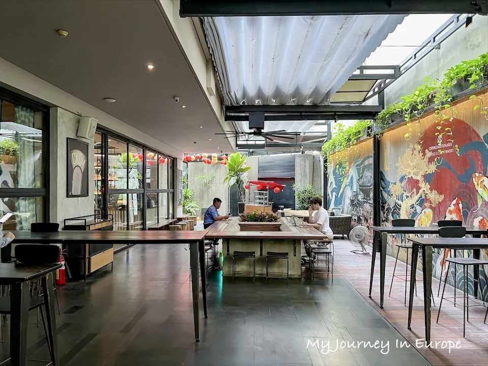 室內座位和室外座位一樣,牆壁上有著滿滿的塗鴉,但室內的環境比較偏工業風,而且沒有室外那麼明亮。