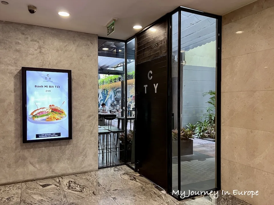 CTY Kitchen + Bar 位在胡志明市第三郡的 Centec Tower 大樓裡,這棟大樓裡有很多的飯店、辦公室和餐廳。從 Centec Tower 的大門進去後右轉就會看到 CTY Kitchen + Bar 的指示路線,餐廳的位置算是很好找。