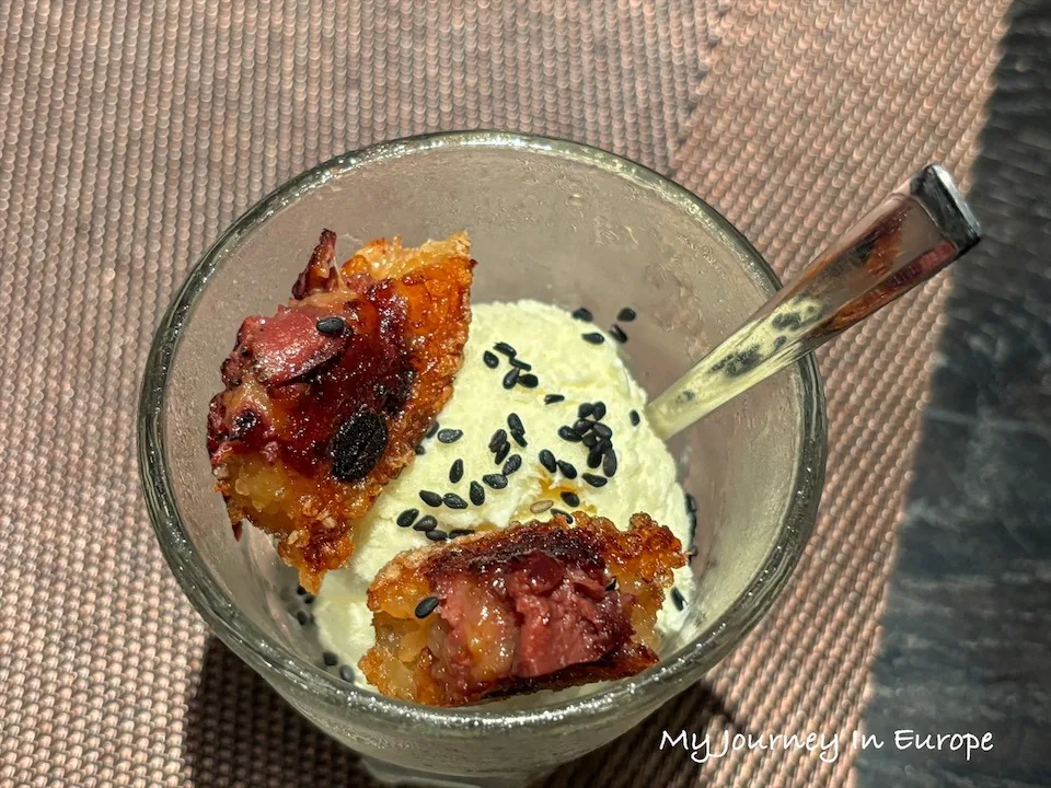 甜點的部分則是炸香蕉香草冰淇淋,小小的一杯很快就吃完了。